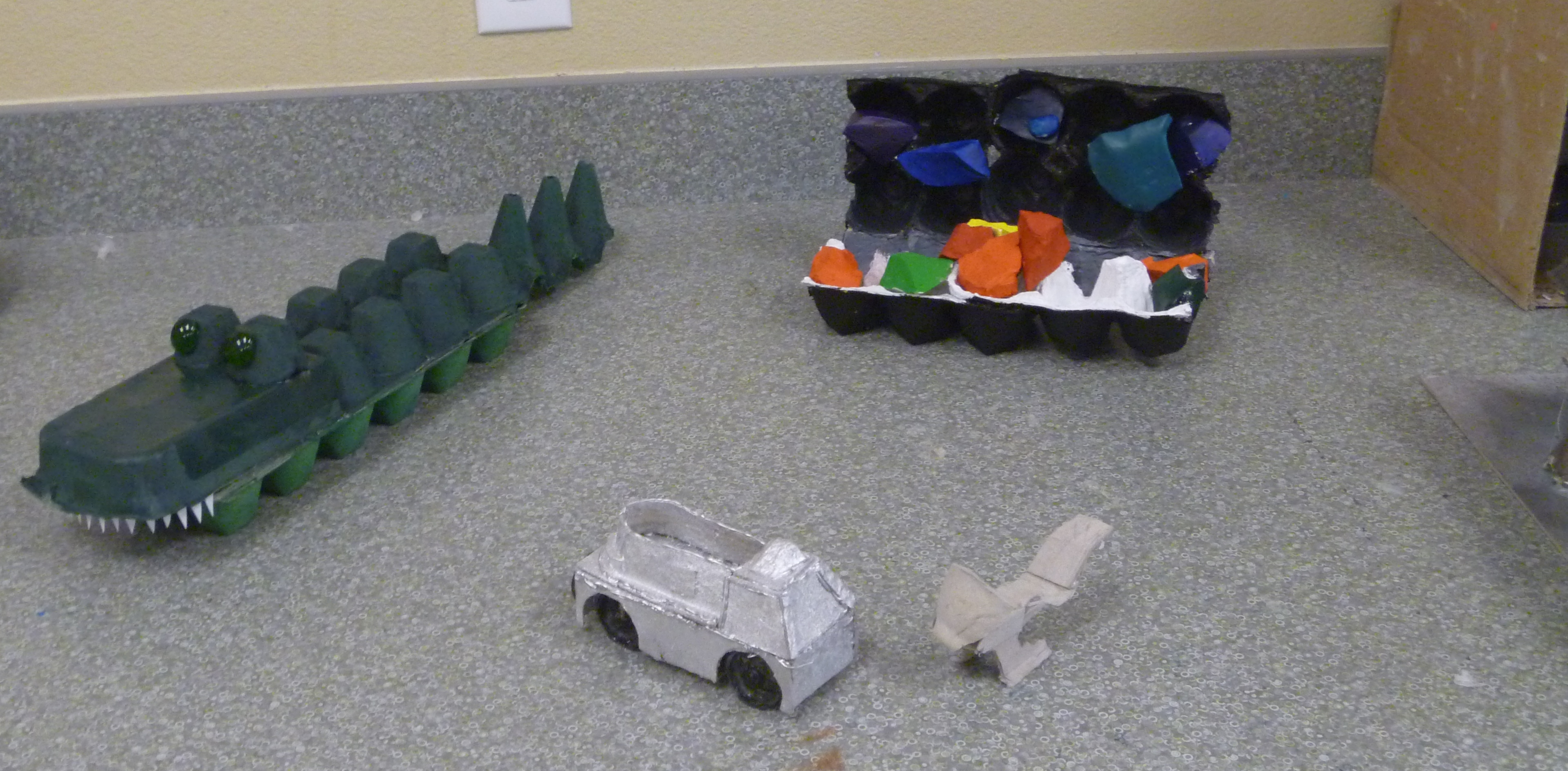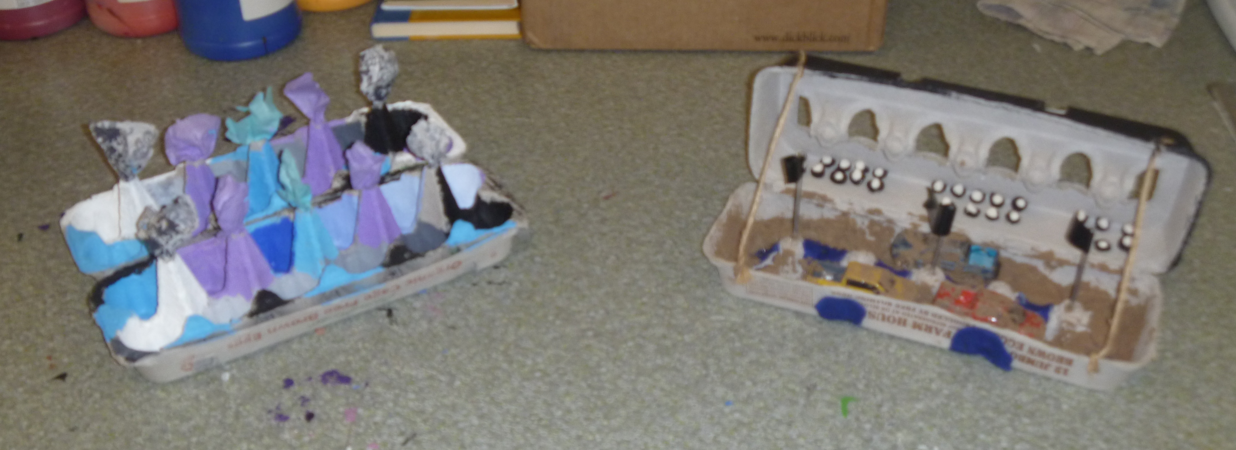 Think back to this post where I talked about bringing in some choice to my art 1 students. They were able to work in groups and were each given an egg carton to which they could do whatever they liked as long as their final artwork had informal balance. We worked on the project for about 2 weeks, then we took a week’s break (spring break), and finished up in about 2 or 3 days. During spring break, I decided not to grade them on the outcome of their project, but instead to grade them on the process and what they had to say about that process. I had created a list of questions for them to answer.