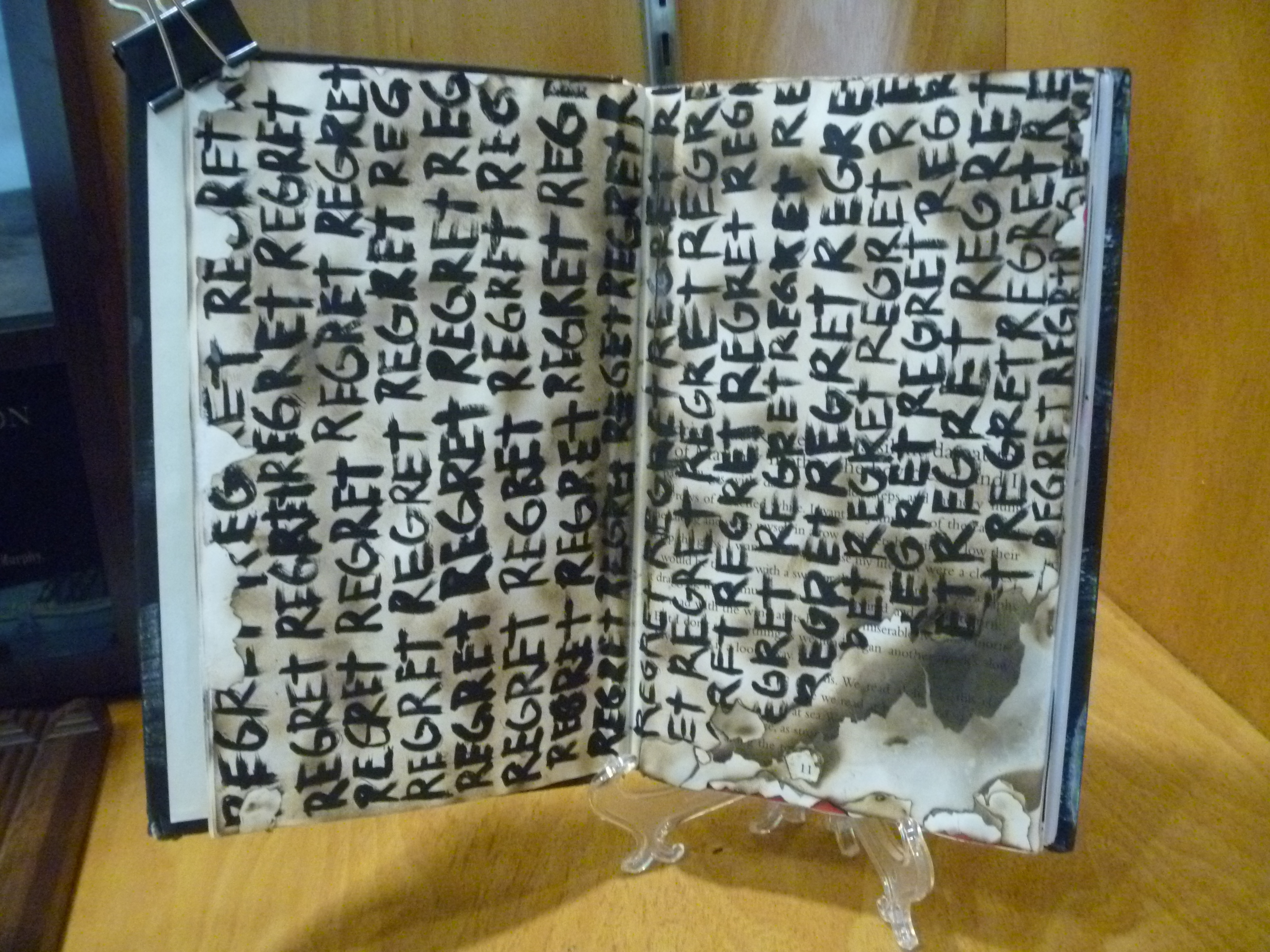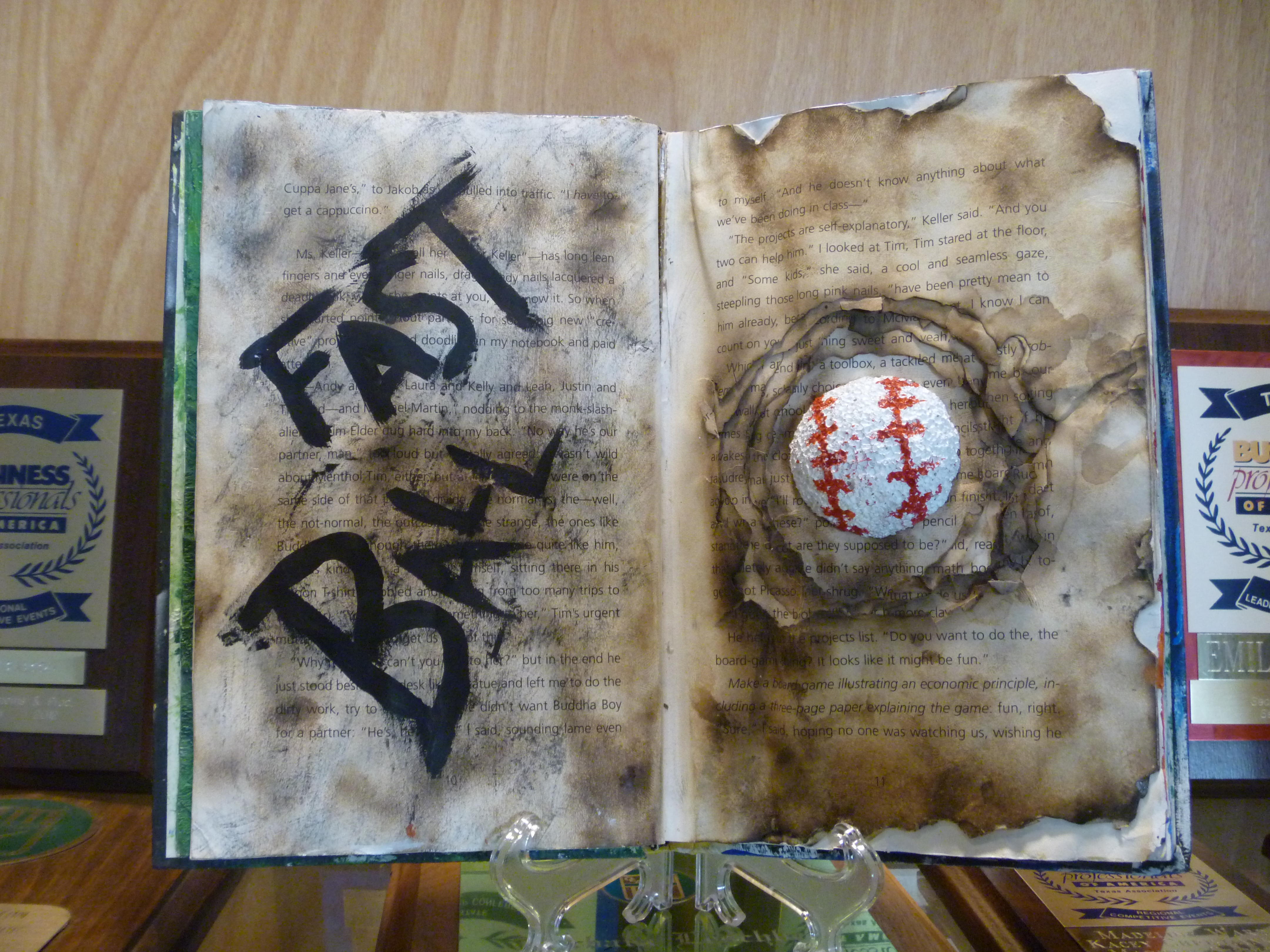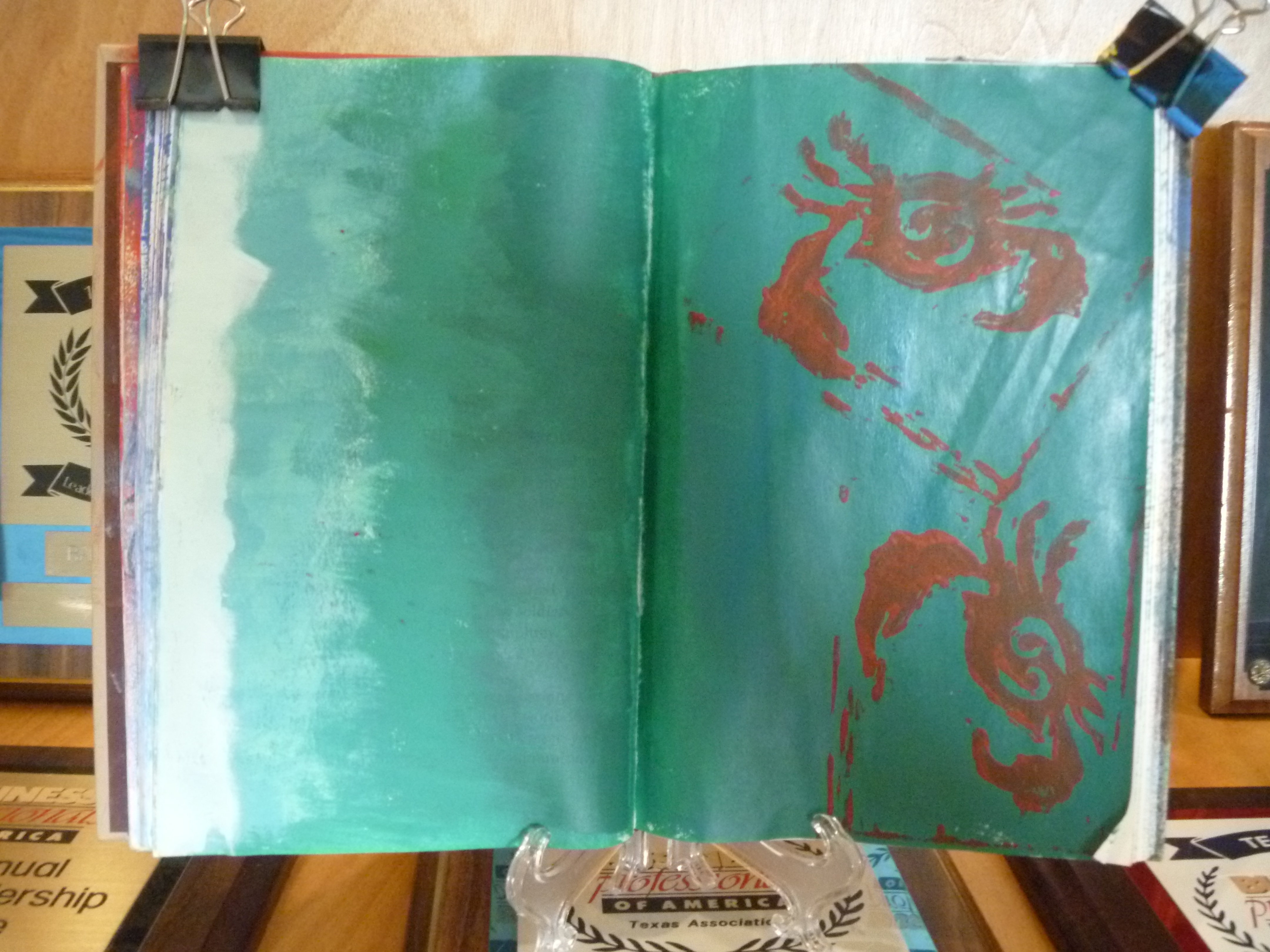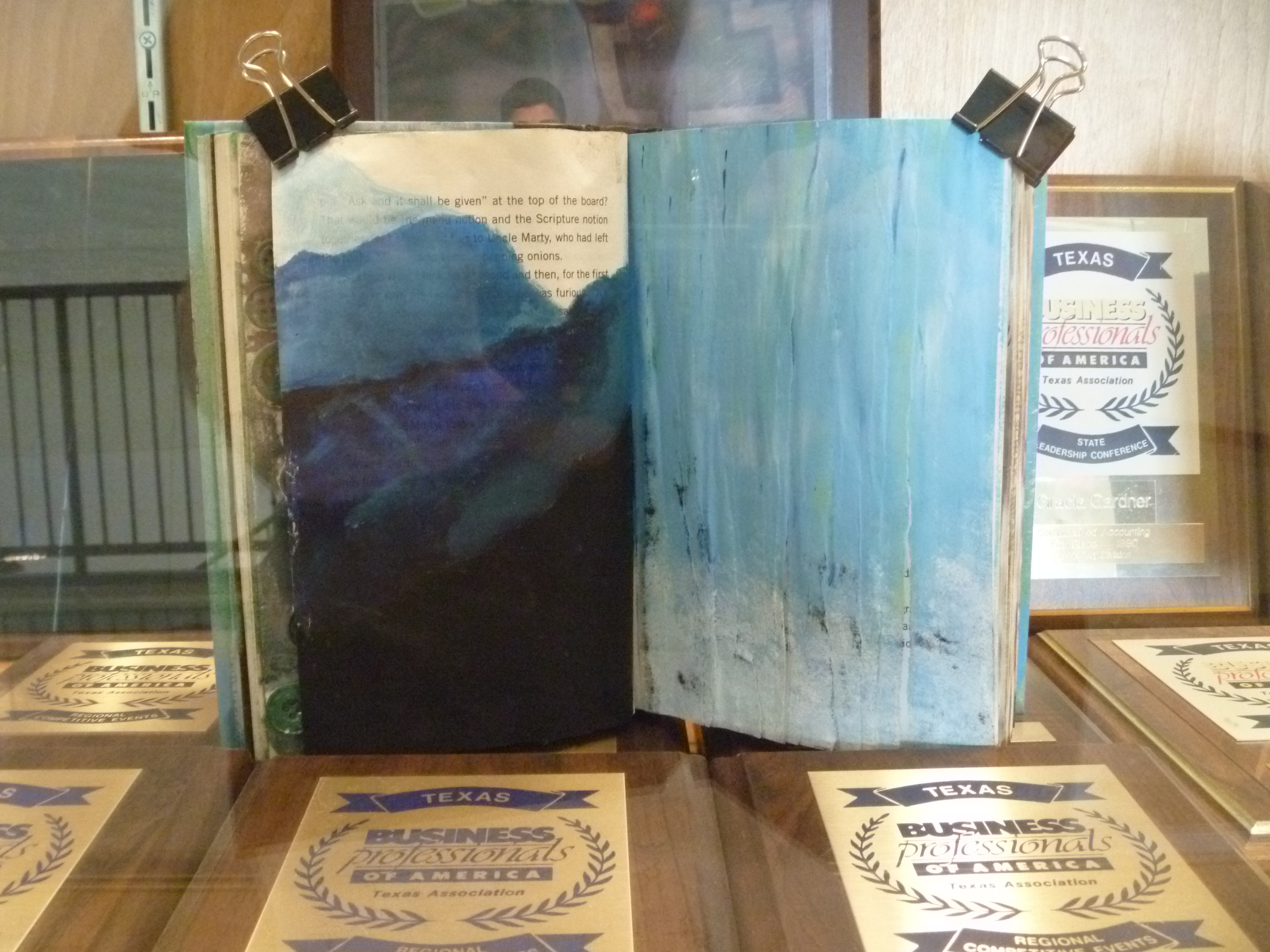 My Art 2: Painting/Drawing students finally finished their altered books, and let me tell you what… they are fabulous. (As a side note, I think I have been in Texas too long if I just wrote the phrase “let me tell you what.”) Anyway, I knew some were going to be a home run, but I wasn’t prepared for almost every book having at least one amazing page. Normally I get some great books and a few that could have been great, but were never finished. And, of course there are the ones that should have never been allowed to become artworks.