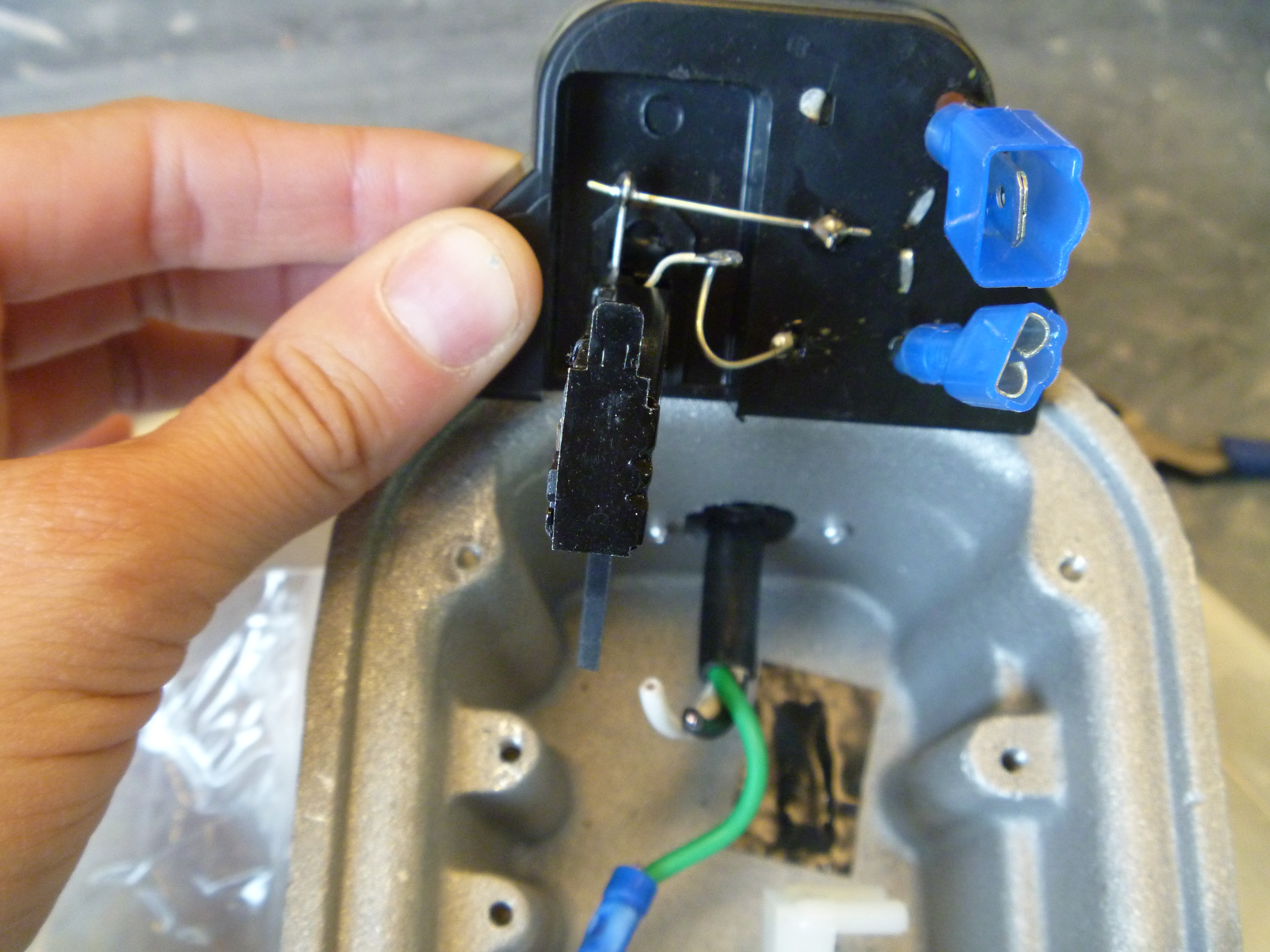 I wrote back and told the service person. She told me I would have to strip the wires and attach them, but assured me no soldering was necessary. I then cut the blue caps and stripped both sets of wires so they leads were long enough for me to twist together and cover up. Let me tell you, it wasn’t easy. There wasn’t a lot of wire there to work with.