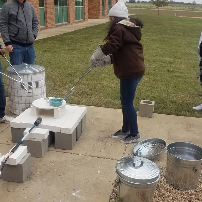 In 2017, I applied for a grant with our local educational enrichment foundation, TEEF, to get a Bracker Raku Kiln and all the needed pieces that go with it. I was one of the lucky few whose grants were funded or partially funded. It was an amazing feeling. I have been waiting since May 2018 to introduce the fun of Raku to my upper ceramics students.