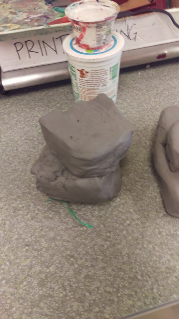 2 pieces of clay stacked and ready to be slammed