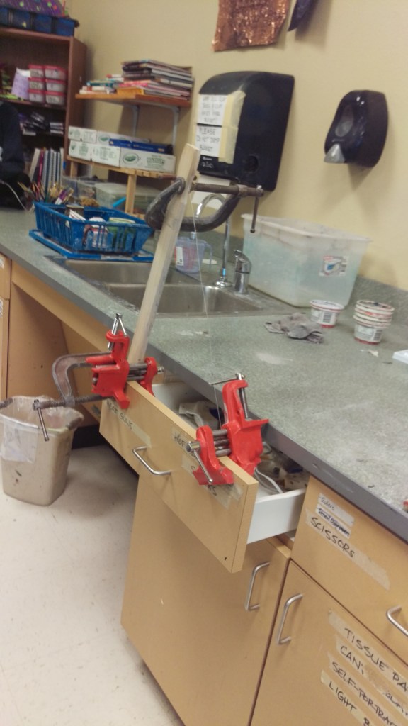 Our make-shift wire cutting station